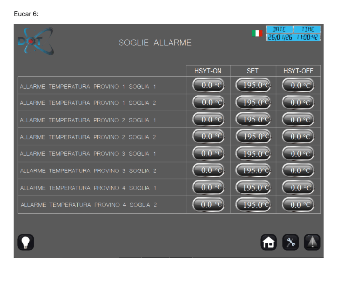 Il sistema permette la configurazione delle soglie di sicurezza per il controllo del processo: