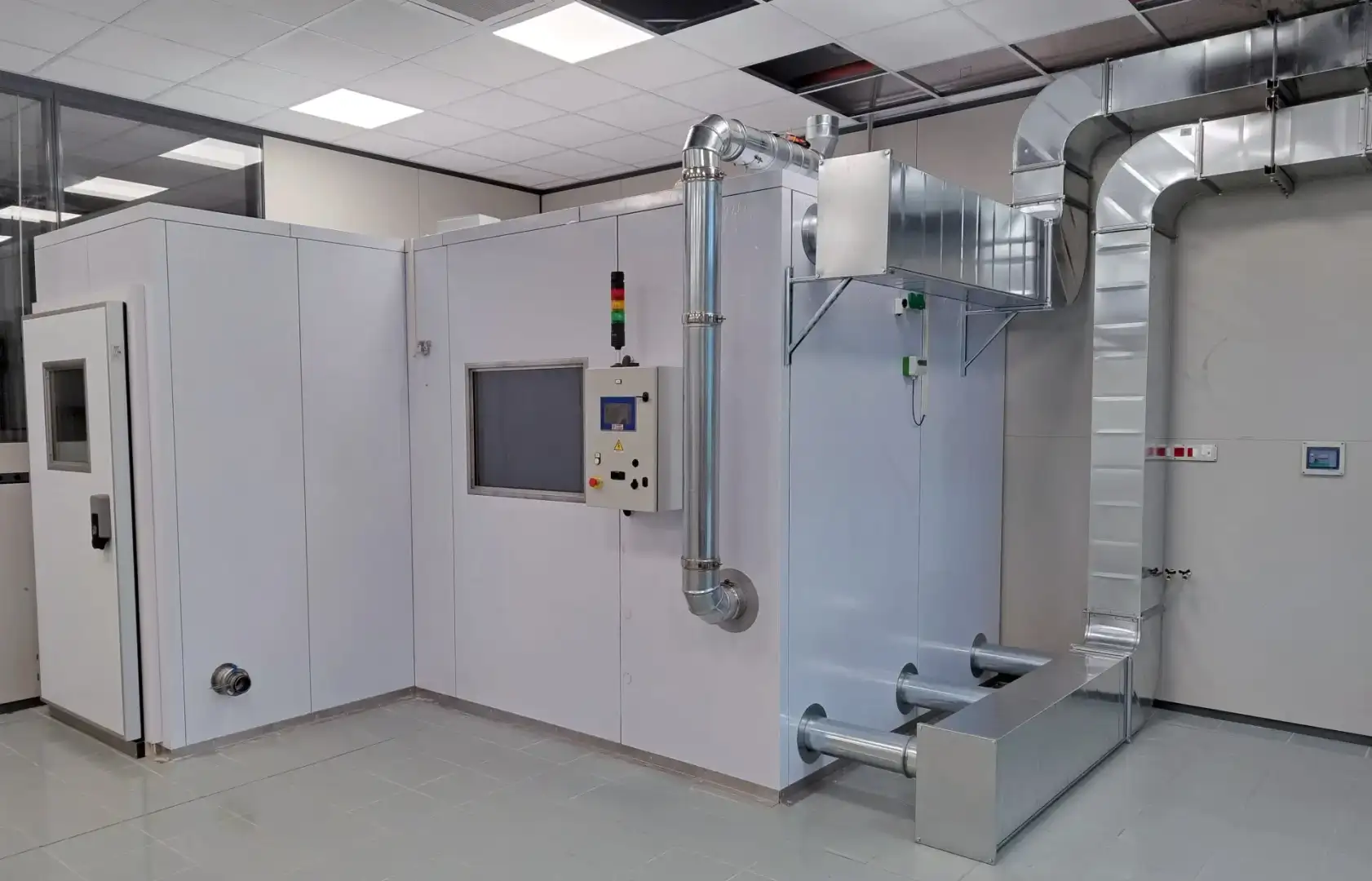 Construction of a state-of-the-art dry room, designed to ensure rigorous humidity control and optimal environmental conditions, supporting research and development activities with maximum precision and reliability.