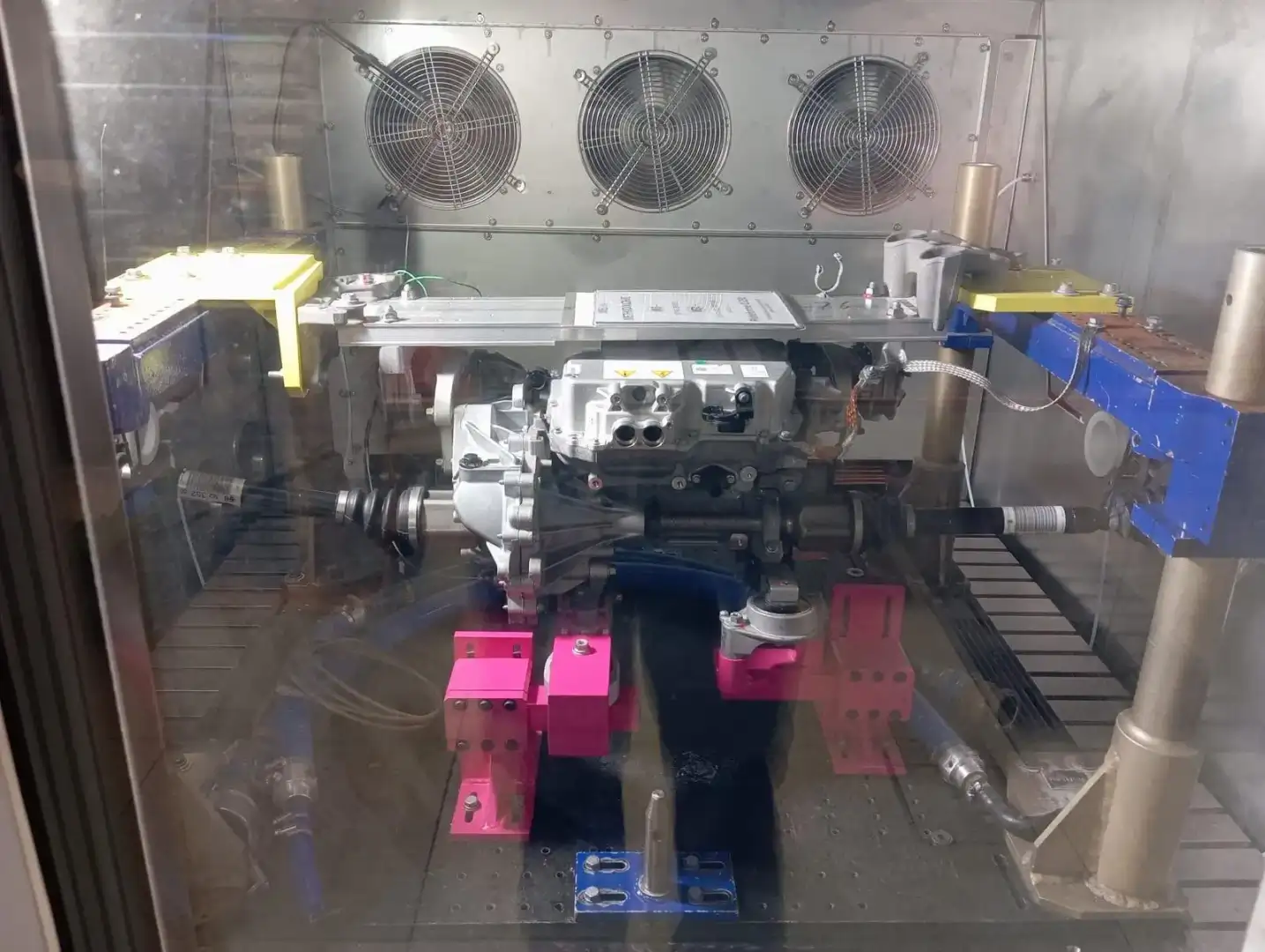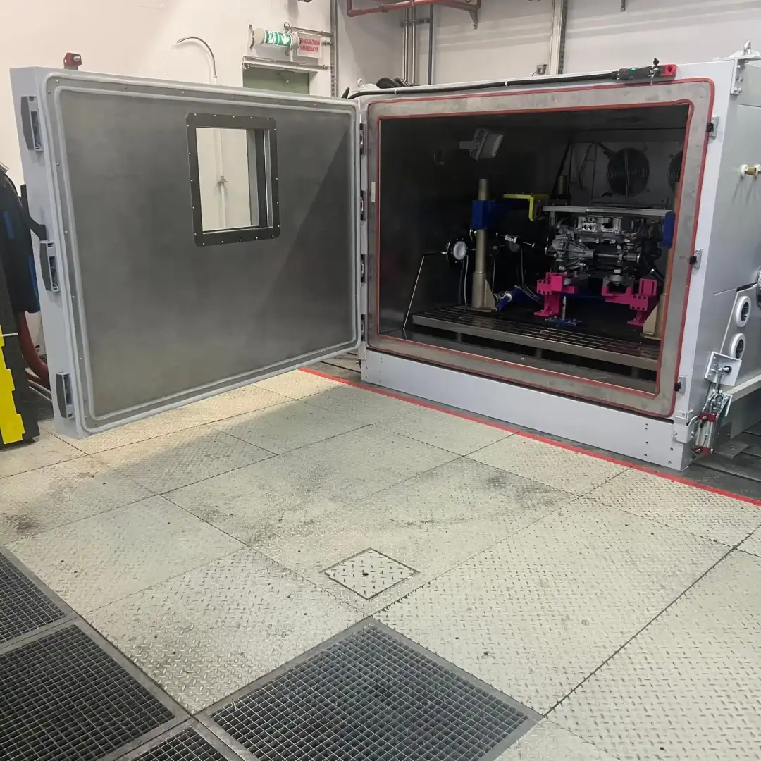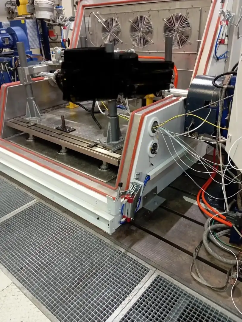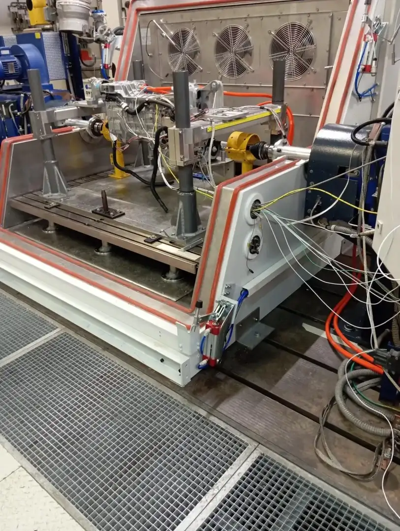 The chambers were engineered for dynamic testing of dual electric motors operating in back-to-back configuration, with high thermal dissipation and direct integration with dynamometer benches.