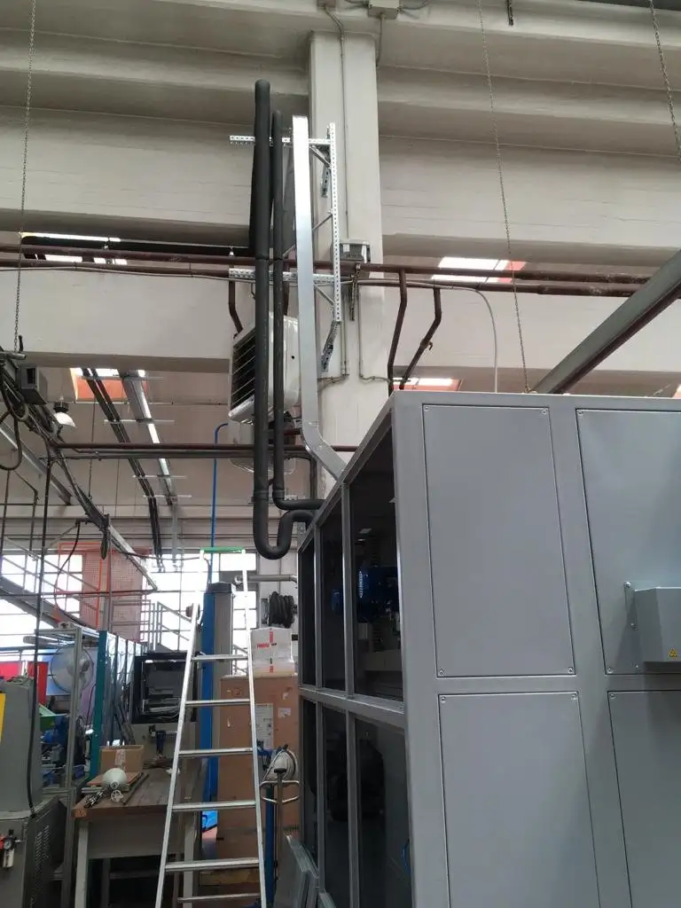 The design carefully considered the total length of the pipes (26 metres), including bends, ascents and descents, to avoid interference with operators and equipment, ensuring optimal performance thanks to careful compensation for pressure drops.
