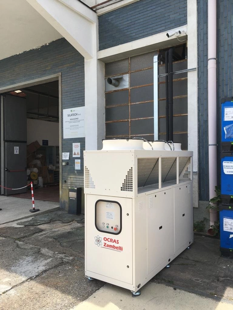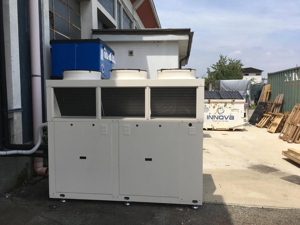 The customer requested the installation of a 7500-litre climate chamber with the refrigeration unit and air condenser positioned externally to eliminate noise and heat loss.