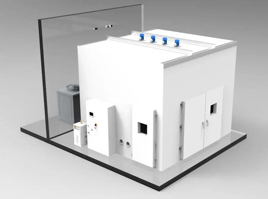 Among our most recent projects, we highlight a 50 m³ Walk-In climatic chamber, equipped with a double door for DUT access and a service door for operators.