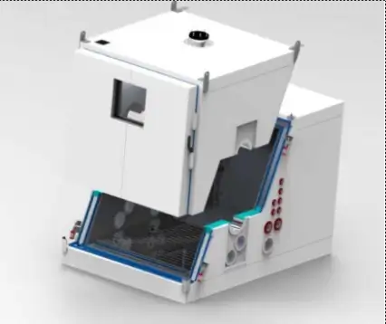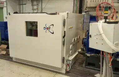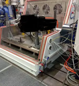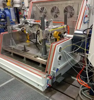 Climatic chamber designed for thermal and climatic testing of integratede-Axle systems and motor-transmission assemblies, developed for high-precision automotive applications and direct integration with dynamometer test benches.