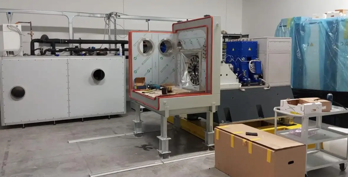Modular climatic system composed of a Climatic Chamber Boxand a separate ACU (Air Conditioning Unit),designed for thermal and climatic testing of electric motors and integrated power train systems connected to anexternal dynamometer.