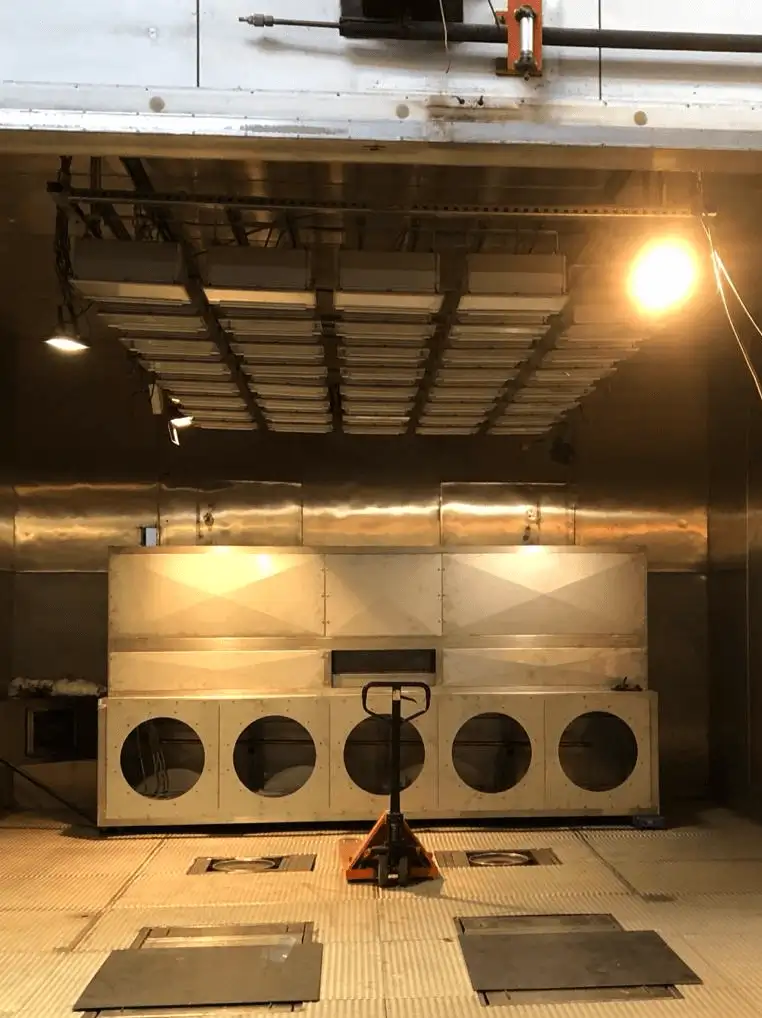 We carried out a total revamp of a 250 m³ climatic chamber (Weiss brand), used for 4-Poster vehicle vibration testing.