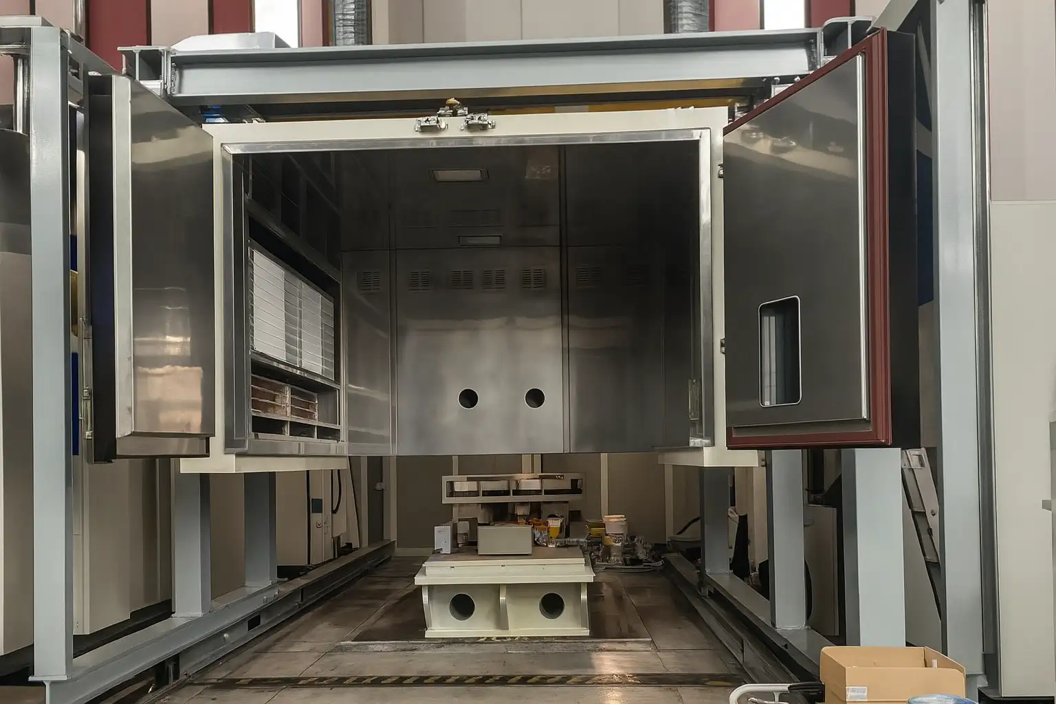 Fornitura e installazione di una camera climatica DOT VIBERION 10m³ abbinata a uno shaker IMV, ideale per test ambientali ad alta precisione.