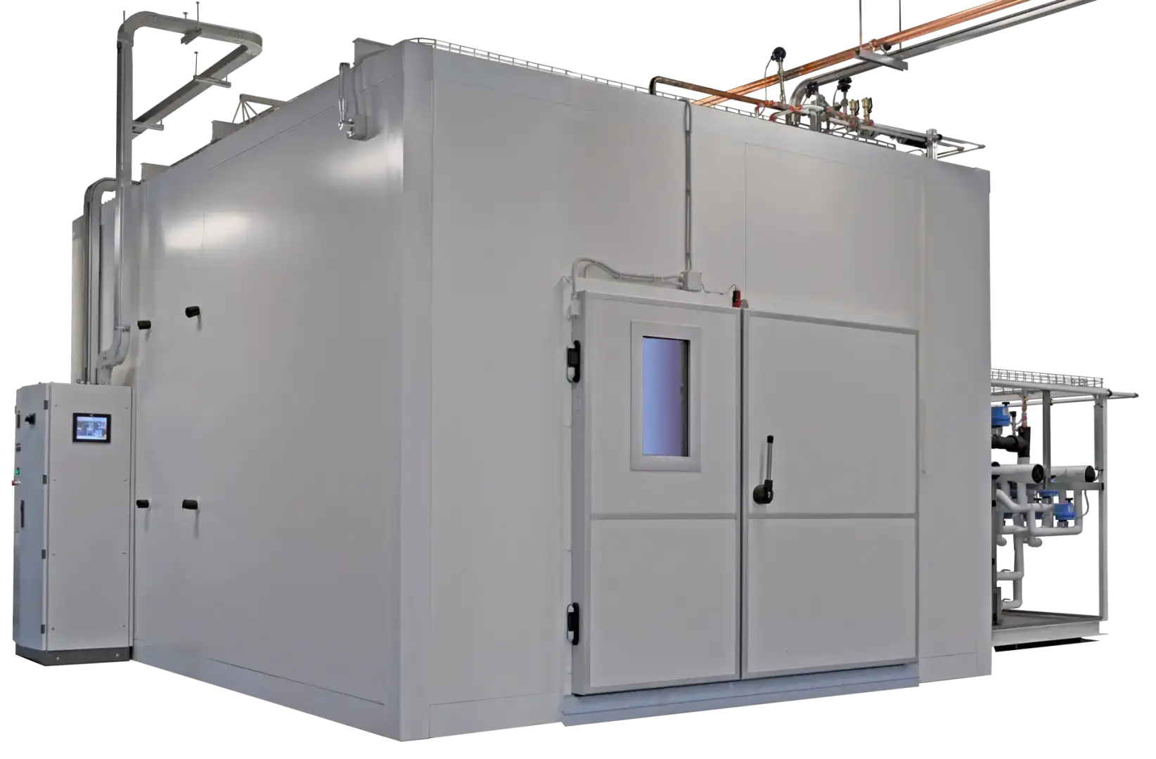 Fornitura e installazione di una Walk-In climatica DROGON da 15 m³, con range termico da -40°C a +120°C, progettata per offrire controllo preciso della temperatura, affidabilità e performance elevate per test ambientali avanzati.