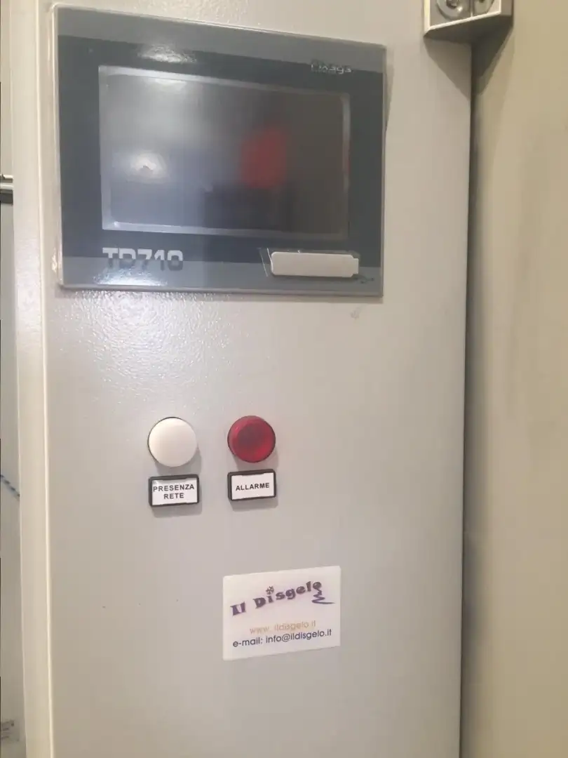 Il controllo è gestito tramite PLC con interfaccia touch panel per: