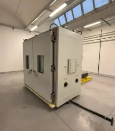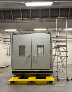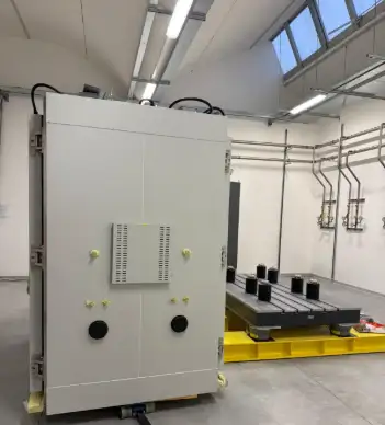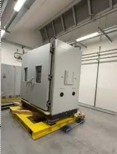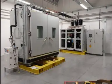 Camera climatica di grande volume progettata per prove termiche e climatiche su motori elettrici, sistemi powertrain completi e assiemi meccanici ad alte prestazioni.